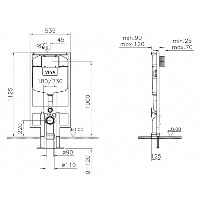 Унитаз-компакт Vitra 9012B003-7205, подвесной, со стандартным сиденьем, с инсталяцией