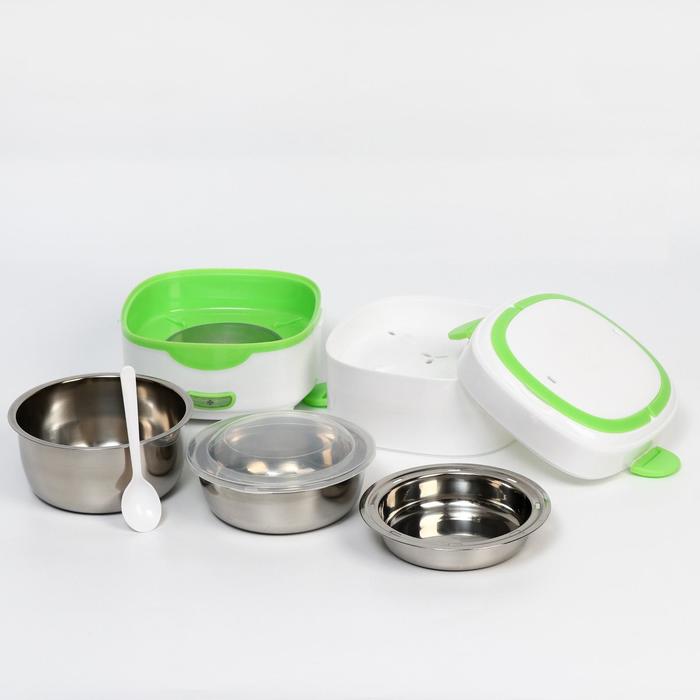Универсальный электрический ланч-бокс 1500 мл, подогрев от сети, 201 сталь, микс, 17.5х20 см 35331