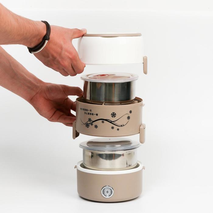 Универсальный электрический ланч-бокс 2000 мл, подогрев от сети, 201 сталь, микс, 15х22 см