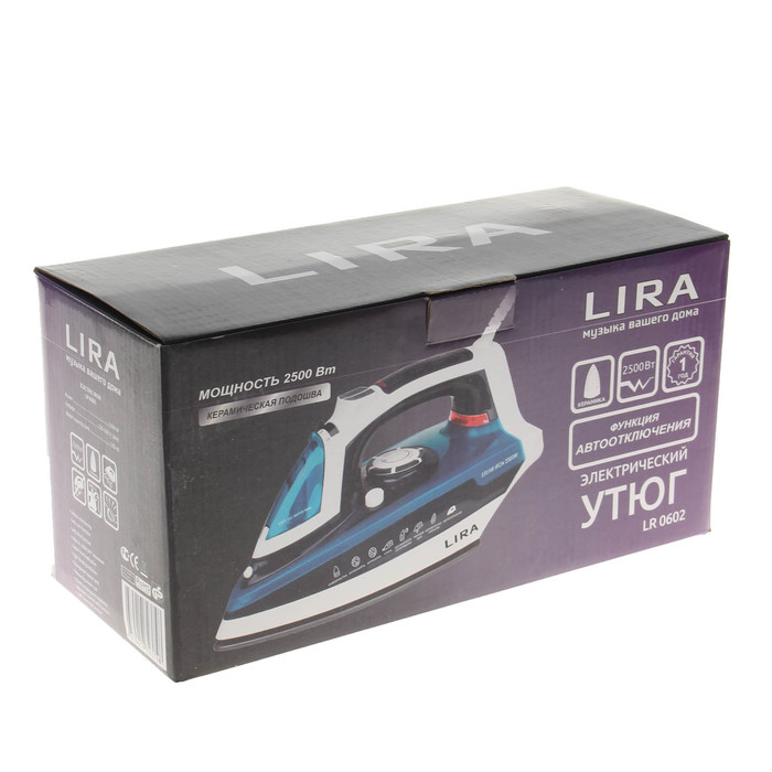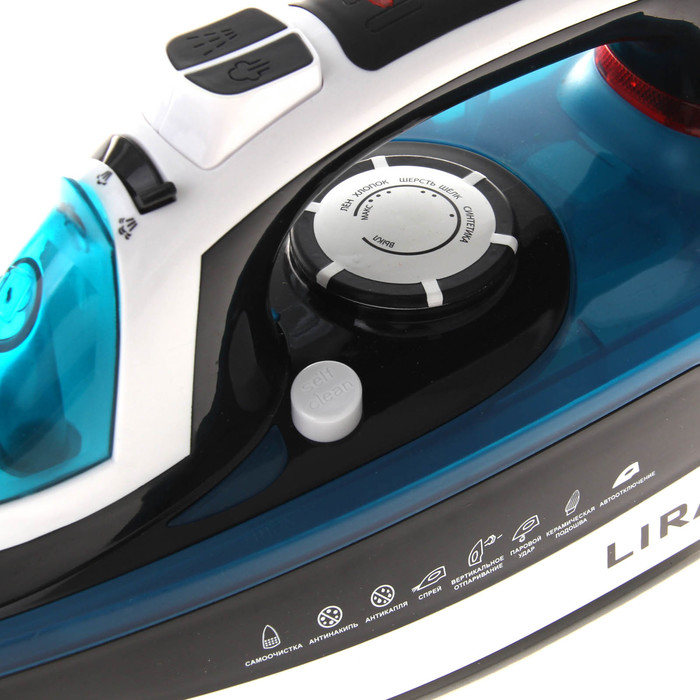 Утюг электрический LIRA LR 0602, 2500 Вт, покрытие подошвы керамическое, белый-синий
