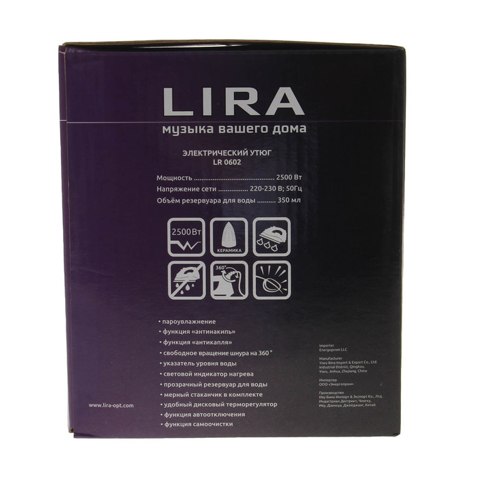Утюг электрический LIRA LR 0602, 2500 Вт, покрытие подошвы керамическое, белый-синий быстро и безопасно приведёт любую одежду и постельное бельё в порядок. Подошва легко скользит по ткани, разглаживая даже самые непослушные складки. Эргономичная ручка удобно лежит в руке во время глажки. Вы сможете самостоятельно выбрать температурный режим в зависимости от степени деликатности материала.
