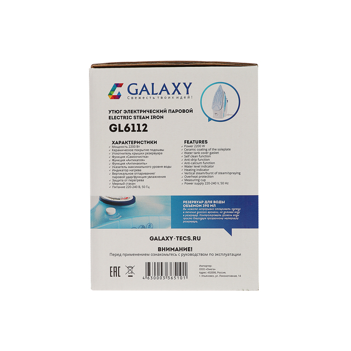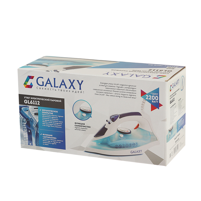 Утюг Galaxy GL 6112, 2200 Вт, керам. покр. подошвы, функции:самоочистка,антикапля,антинакипь 38807