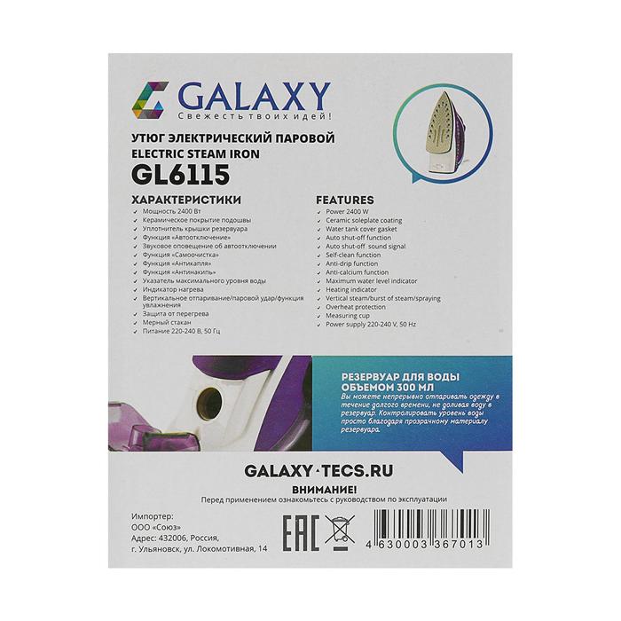 Утюг Galaxy GL 6115, 2400 Вт, керам. покр. подошвы, функции:самоочистка,антикапля,антинакипь 38807