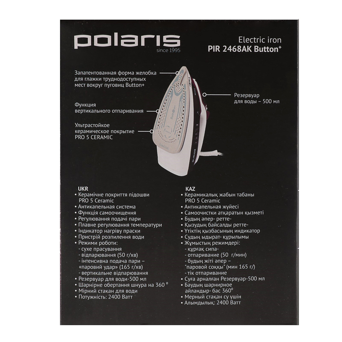 Утюг Polaris PIR 2468AK Button+ с отпаривателем, фуксия/белый