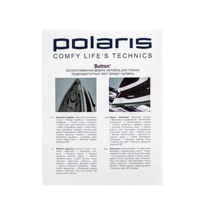 Утюг Polaris PIR 2468AK Button+ с отпаривателем, фуксия/белый быстро и безопасно приведёт любую одежду и постельное бельё в порядок. Подошва легко скользит по ткани, разглаживая даже самые непослушные складки. Эргономичная ручка удобно лежит в руке во время глажки. Вы сможете самостоятельно выбрать температурный режим в зависимости от степени деликатности материала.