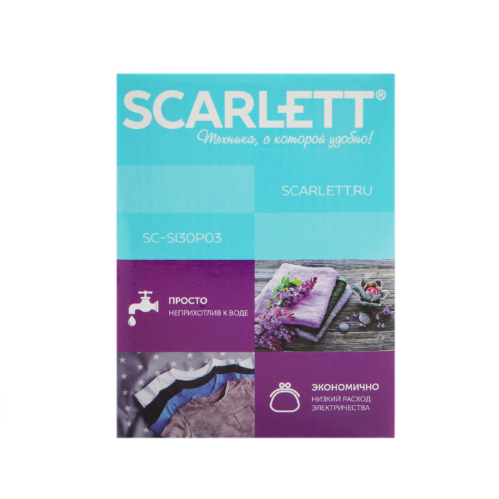 Утюг Scarlett SC-SI30P03, 1300-1600 Вт, паровой удар 50 г/мин, фиолетовый быстро и безопасно приведёт любую одежду и постельное бельё в порядок. Подошва легко скользит по ткани, разглаживая даже самые непослушные складки. Эргономичная ручка удобно лежит в руке во время глажки. Вы сможете самостоятельно выбрать температурный режим в зависимости от степени деликатности материала.