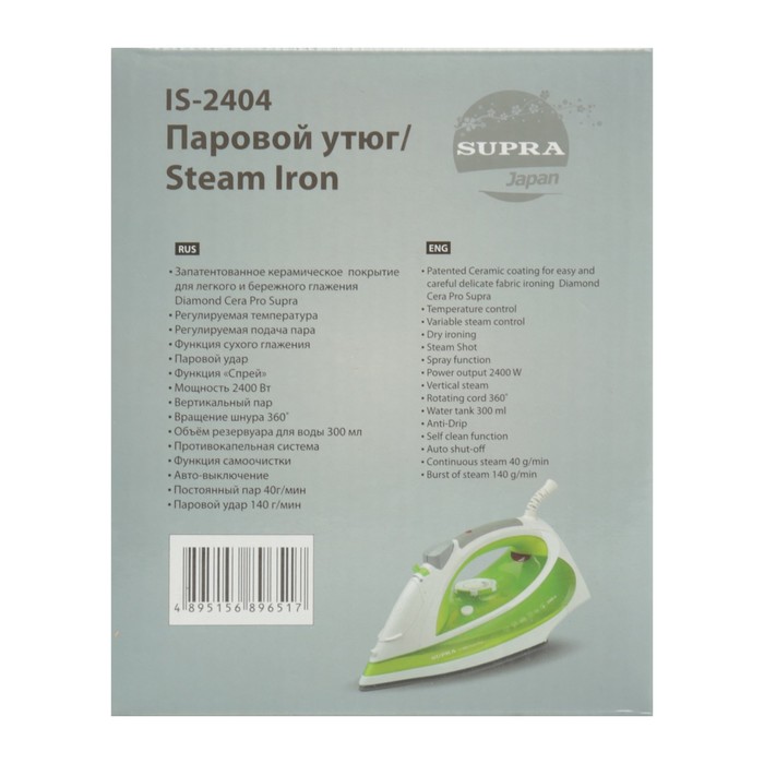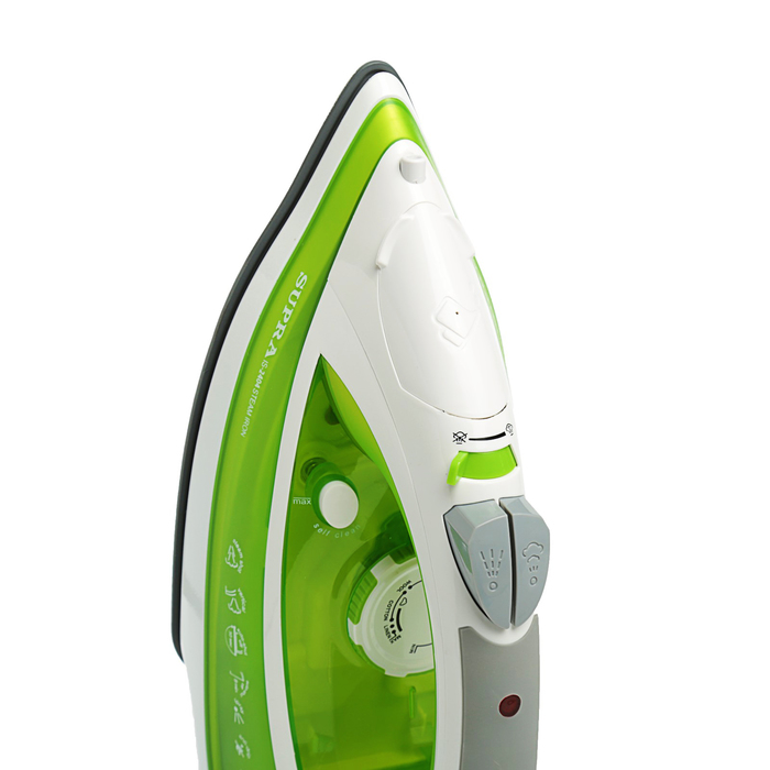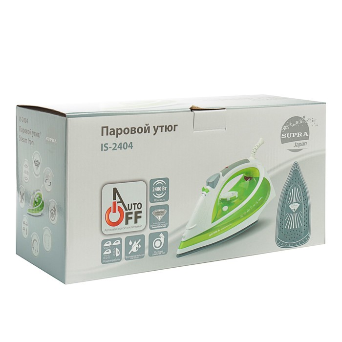 Утюг SUPRA IS-2404, керамическое покрытие, спрей, паровой удар, 2400 Вт, зелёный быстро и безопасно приведёт любую одежду и постельное бельё в порядок. Подошва легко скользит по ткани, разглаживая даже самые непослушные складки. Эргономичная ручка удобно лежит в руке во время глажки. Вы сможете самостоятельно выбрать температурный режим в зависимости от степени деликатности материала.