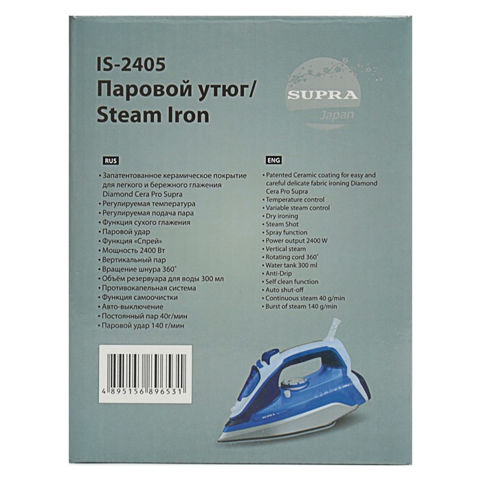 Утюг SUPRA IS-2405, керамическое покрытие, спрей, паровой удар, 2400 Вт, синий