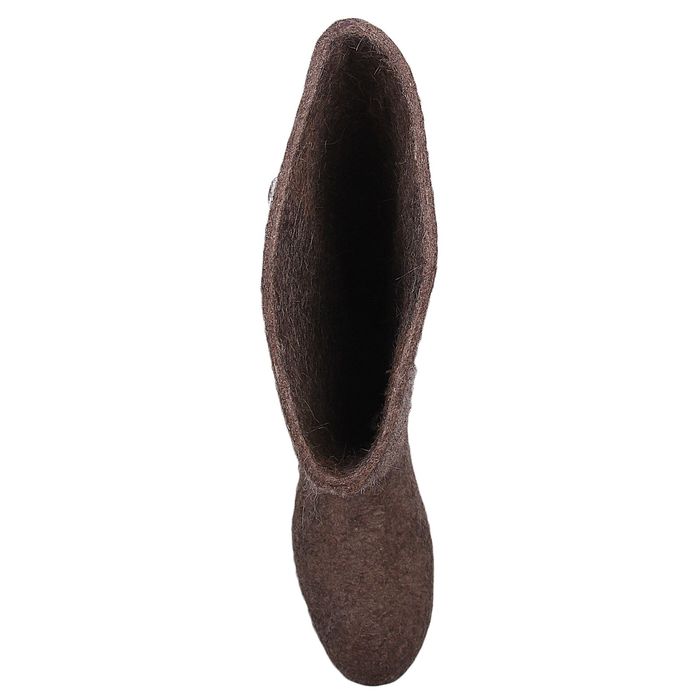 Модель выполнена из высококачественного войлока, который получается в процессе валяния натуральной овечьей шерсти, поэтому обладает всеми её лучшими свойствами: сохраняет тепло ног, обладает особой мягкостью.