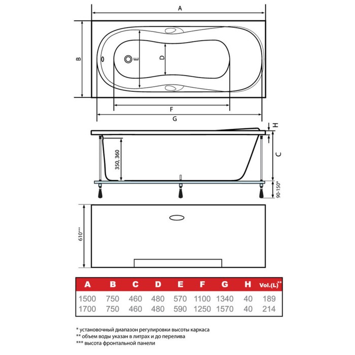 - Небольшой вес (варьируется в пределах 20‒45 кг в зависимости от размеров), что заметно облегчает транспортировку и установку ванны.