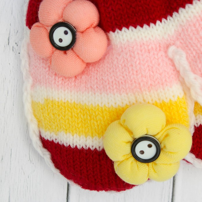 Варежки детские "Цветочки", размер 16 (р-р произв. 8), цвет розовый/бордо 65473