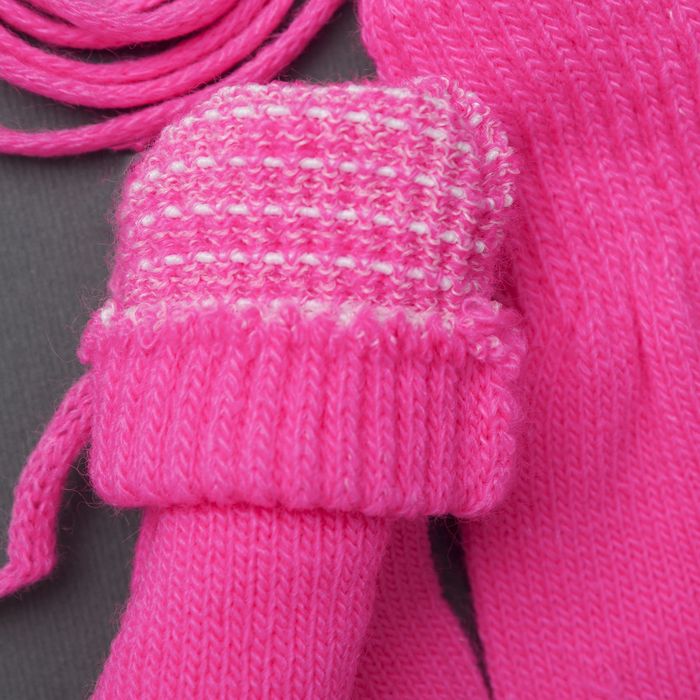 Варежки детские на верёвочке Collorista, размер 14 (р-р произв. 12*7 см), цвет ярко розовый
