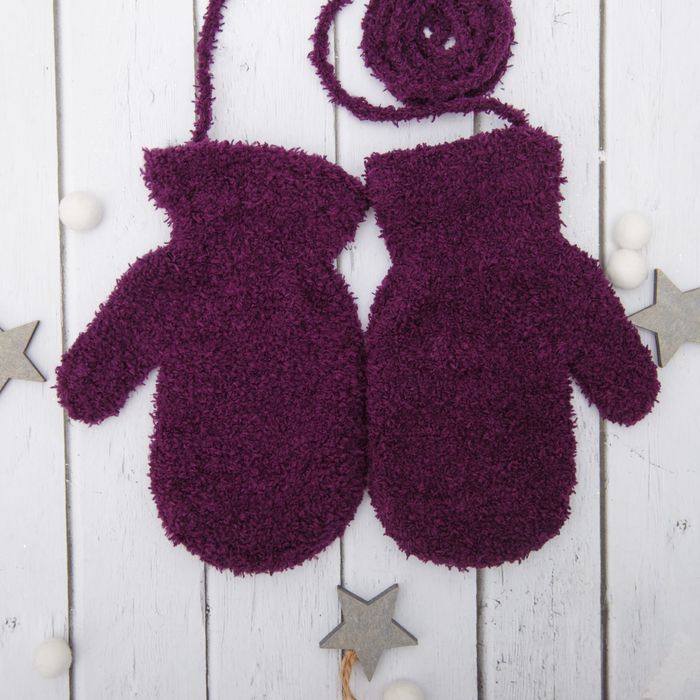Варежки детские на верёвочке, размер 14 (р-р произв. 13*7 см), цвет фиолетовый
