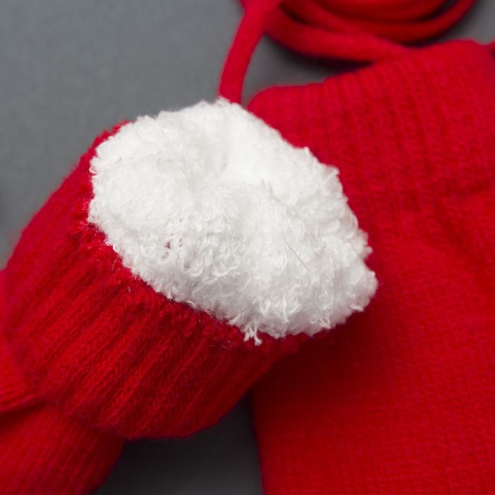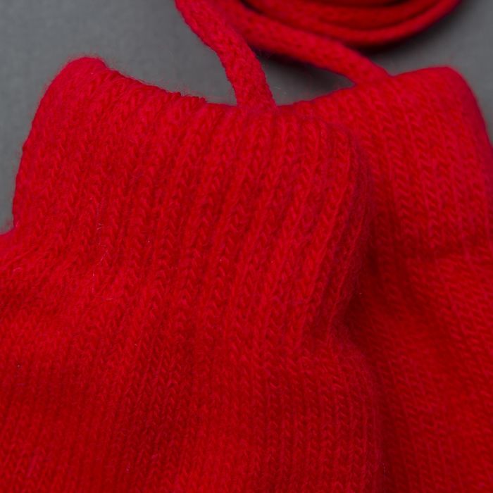 Варежки для девочки 2х слойные 12*7 см (р-р произв. ) на верёвочке, цв. красный