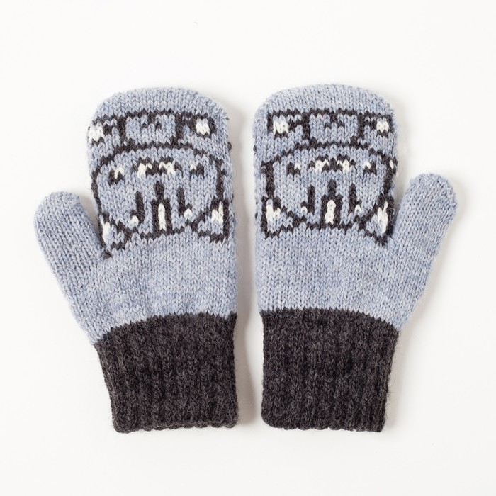 Варежки двойные детские "Мяу", размер 11, цвет тёмно-серый/серый меланж 2с229_М
