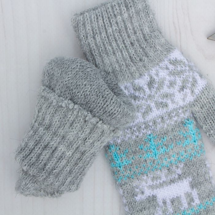 Варежки двойные для мальчика "Северное сияние", размер 17, цвет серый меланж/голубой/белый 2с229 2