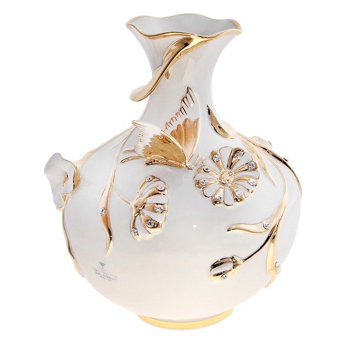 Если вы любите цветы, то вам наверняка известно, что любой, даже самый яркий и красивый букет может потерять большую часть своего очарования, если поставить его в унылую и безликую вазу. Как бриллианту необходима подходящая оправа, так и цветам нужно достойное обрамление. Изящная и оригинальная ваза "Бабочки" известной итальянской марки Sabadin изготовлена из знаменитого фарфора в стиле Каподимонте, украшена кристаллами Swarovski и позолочена вручную. Она будет прекрасно смотреться на изящном столике у окна или на каминной полке - словом, там, где вы определите ее место, ведь изысканная вещь способна преобразить собой любой интерьер.