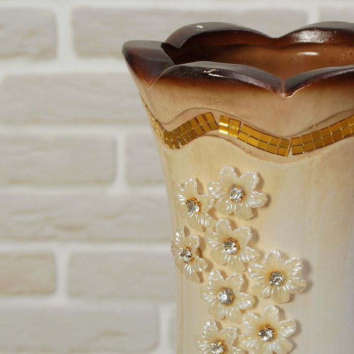 Ваза керамика напольная "Версаль" 60 см букет бежевая горло волна