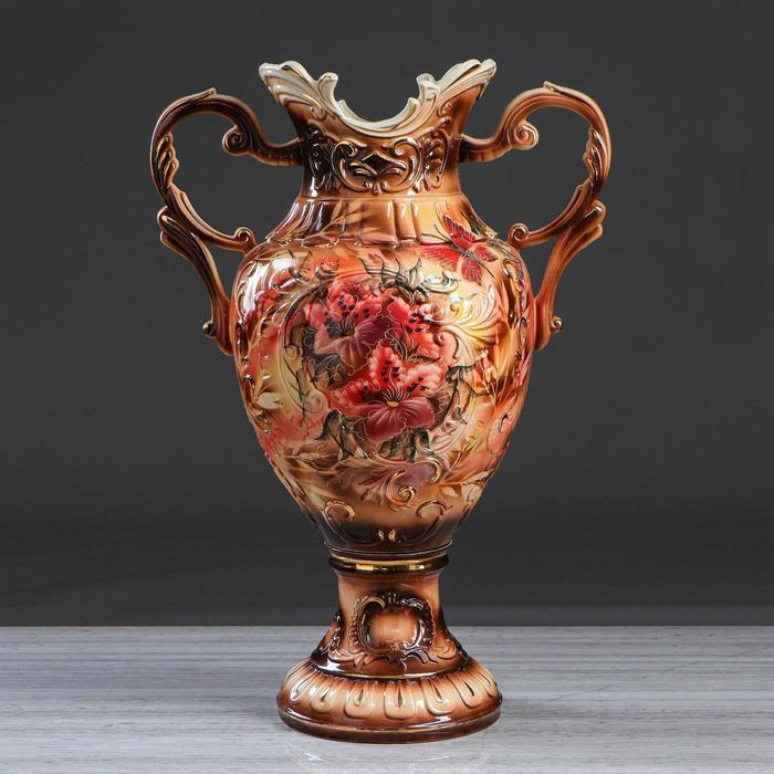 Ваза напольная "Астория" большая, красные цветы, коричневая