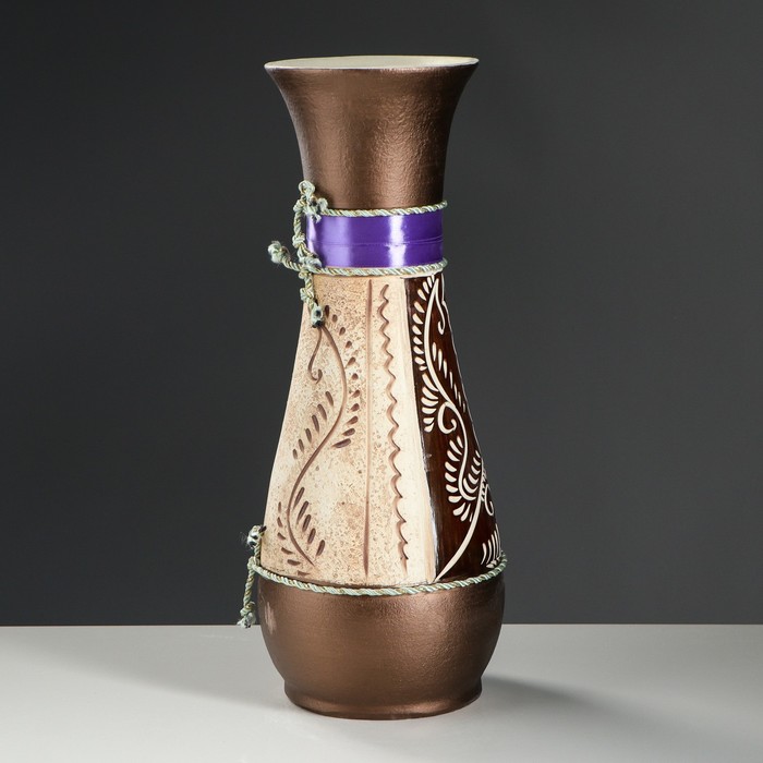 Ваза напольная "Осень" ангоб, фиолетовая лента, микс
