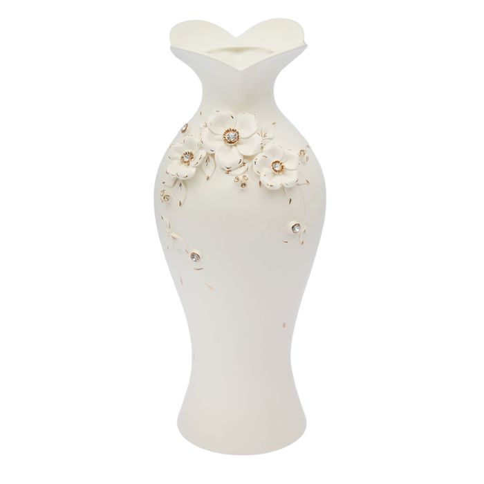 Ваза напольная "Жаклин" белая с лепкой, стразы