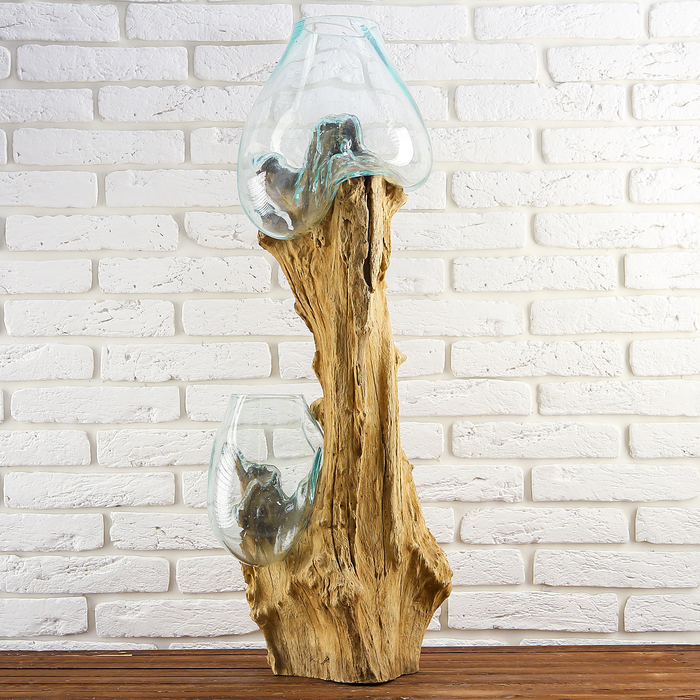 Вазон стекло на дереве "Двойной шарм" 87х45х30 см
