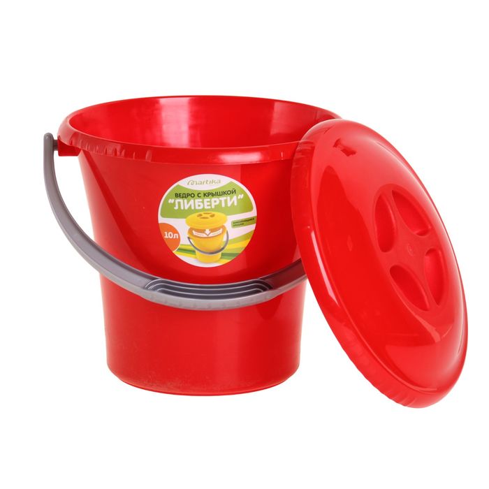 Ведро "Либерти" 10 л с крышкой, цвет красный