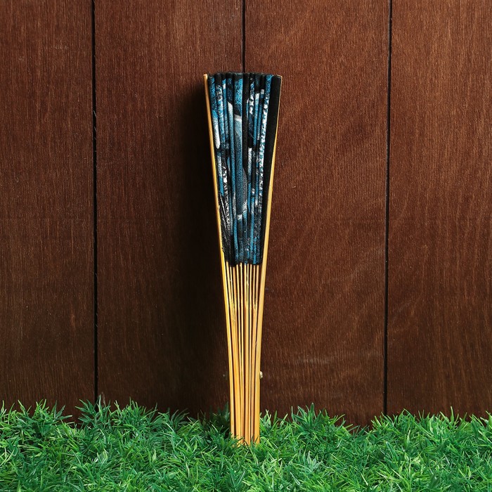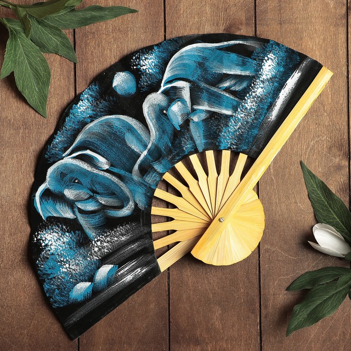 Веер бамбук с блестками "Слоники плескаются" синий фон 25 см
