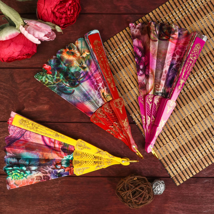 Веер h=23 см "Вьюны" золотистая обводка МИКС