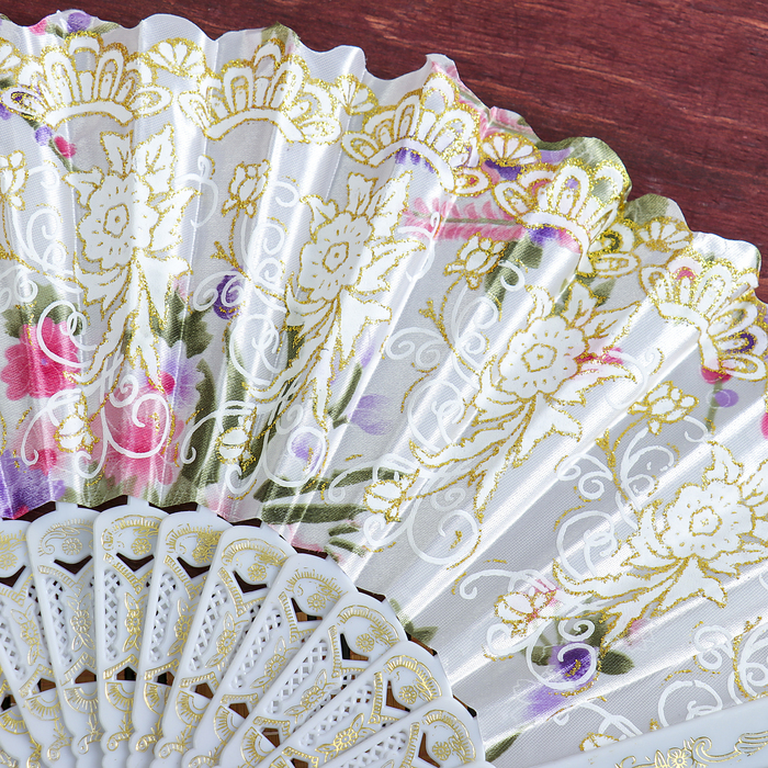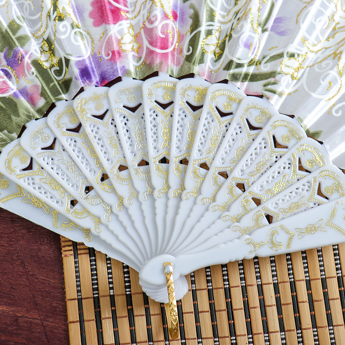 Веер пластик, текстиль "Цветочная феерия" с золотом МИКС 23 см