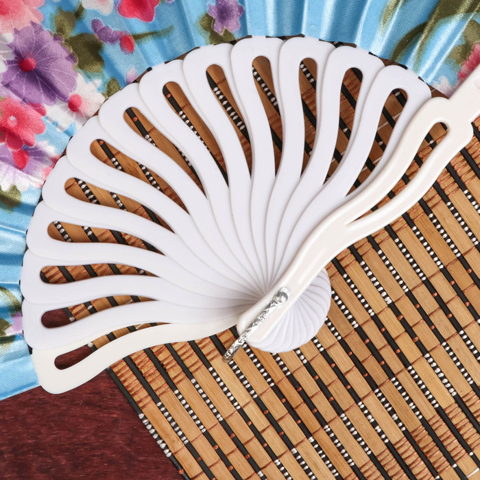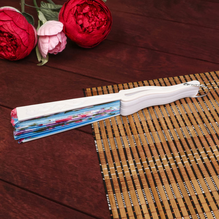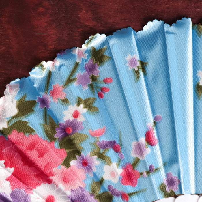 Веер пластик, текстиль изгиб "Крупные цветы на атласе" МИКС 23 см