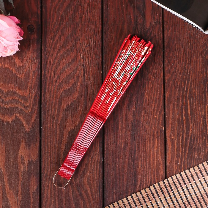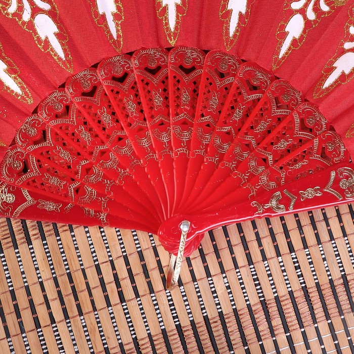 Веер пластик, текстиль "Розы в сердце" с золотом МИКС 23 см