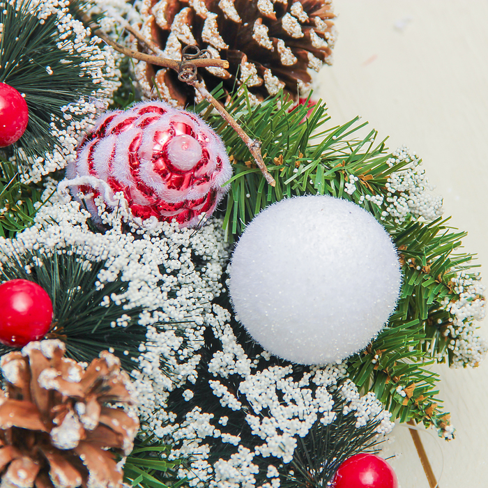 Венок новогодний d- 47 см "Зимнее волшебство" с шишками, ветками