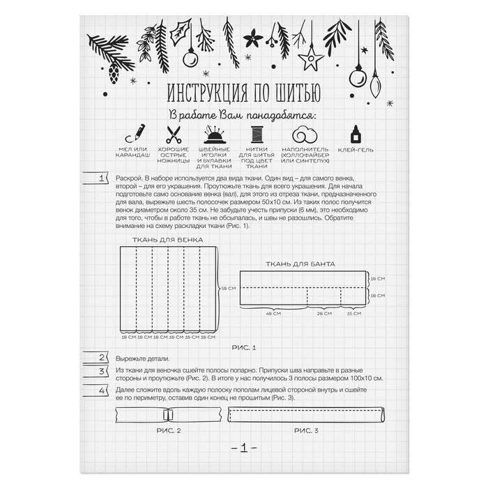 С помощью нашего набора у вас получится восхитительный новогодний венок, которым можно украсить входную дверь. Украшение обязательно привлечет в ваш дом удачу и добрые вести!