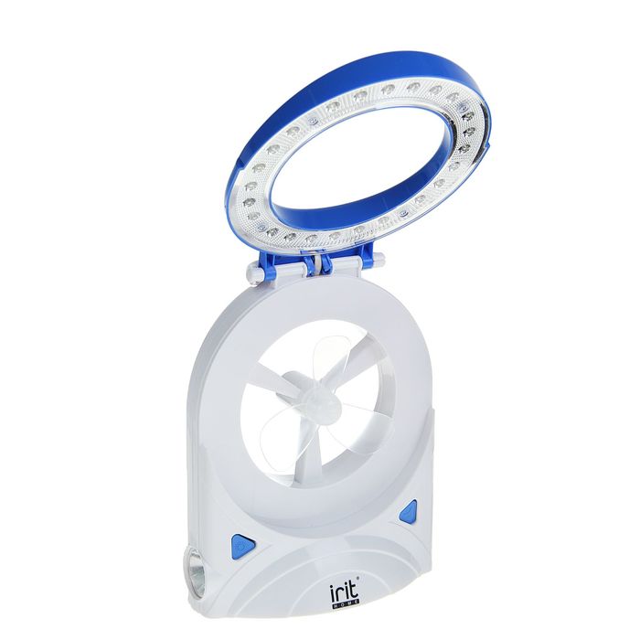 Вентилятор Irit IRV-029, настольный, 3 Вт, лампа, фонарь, бело-синий