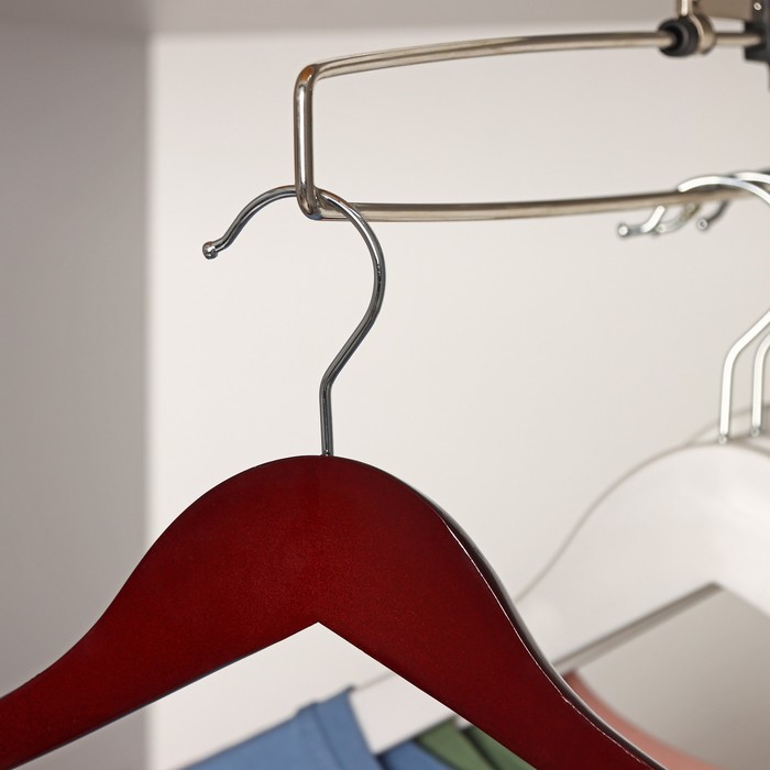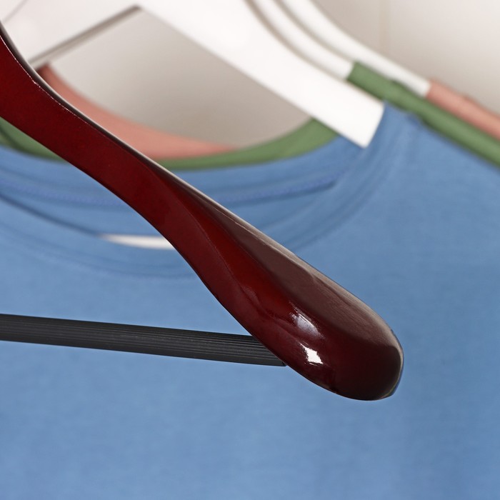Вешалка для верхней одежды с перекладиной, широкие плечики 45х23 см, цвет орех