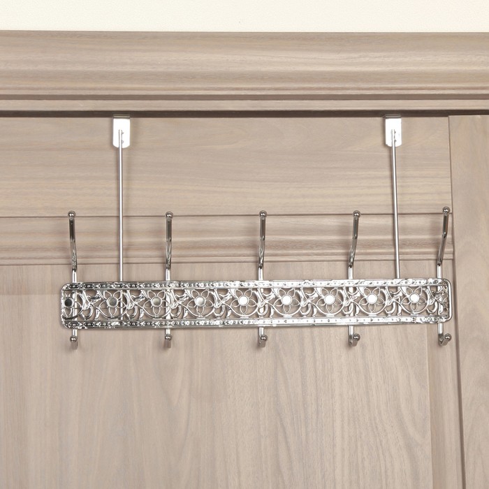 Вешалка надверная, 5 двойных крючков, цвет хром