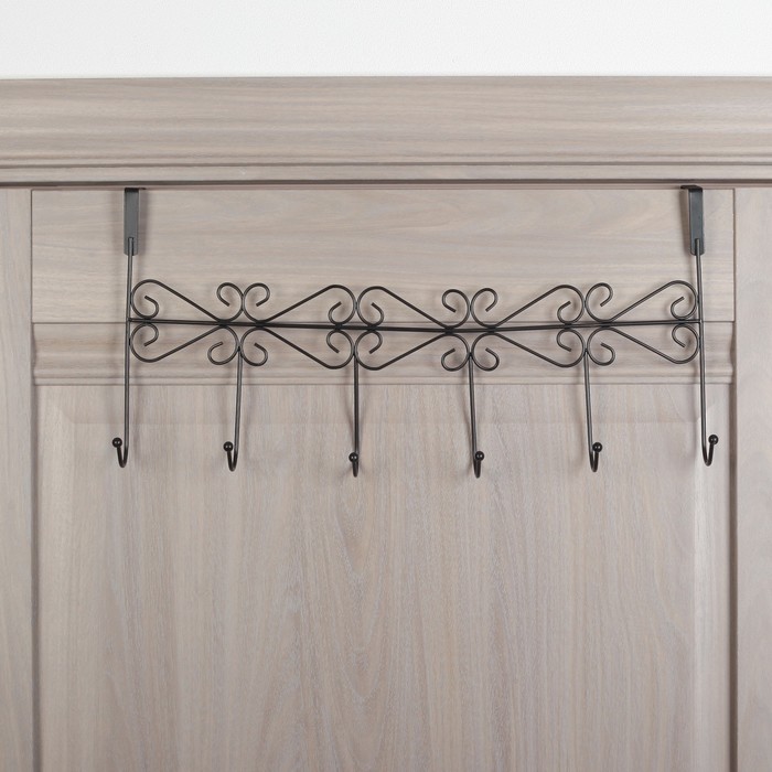 Вешалка надверная, 6 крючков 47х22,5х10 см, черная