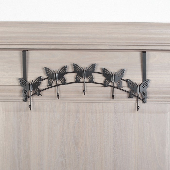 Вешалка надверная на 5 крючков 41х18,5х11 см "Бабочки",черная