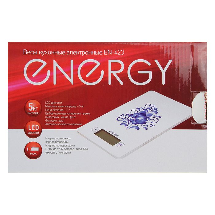 Весы кухонные электронные ENERGY EN-423, до 5 кг, LCD дисплей, автоотключение, "полоска"