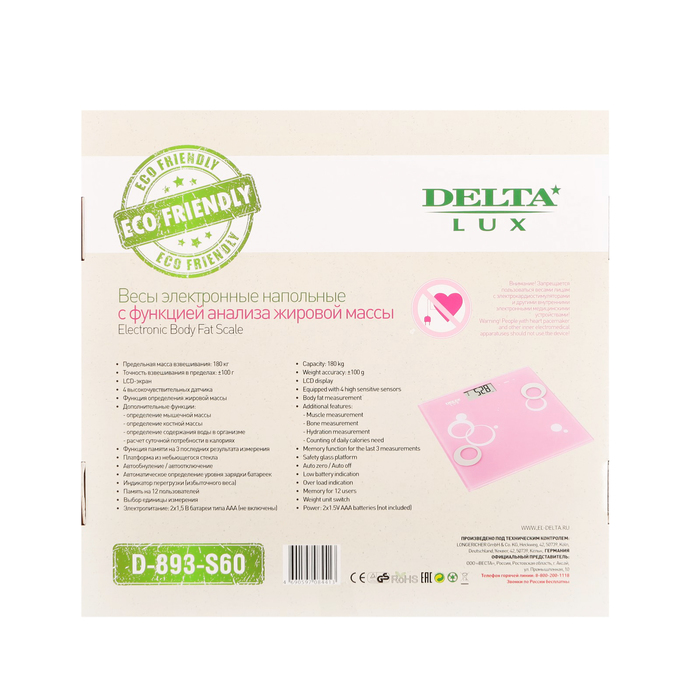 Весы напольные DELTA LUX D893-S60, электронные, до 180 кг