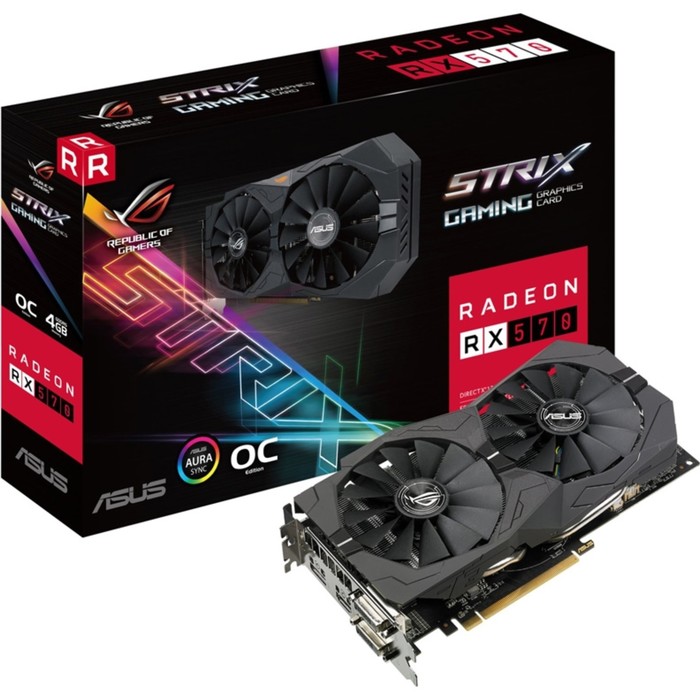 Видеокарта Asus AMD Radeon RX 570 ROG STRIX GAMING OC, 4G, 256bit, GDDR5, 1280/7000, Ret