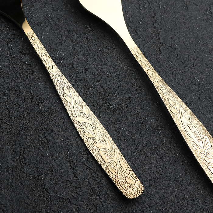 Коллекция столовых приборов "Уралочка" воплощает элегантную простоту. Каждый предмет серии обладает классической формой и размерами, украшен изысканным растительным орнаментом по лицевой стороне ручки.
