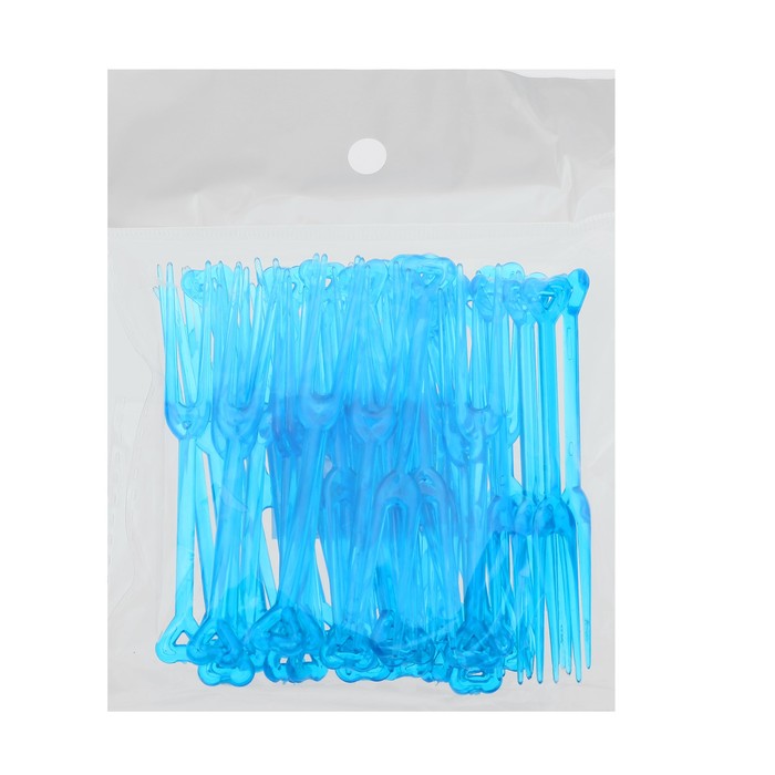 Вилка для канапе "Сердце" цвет синий (набор 50 шт.)