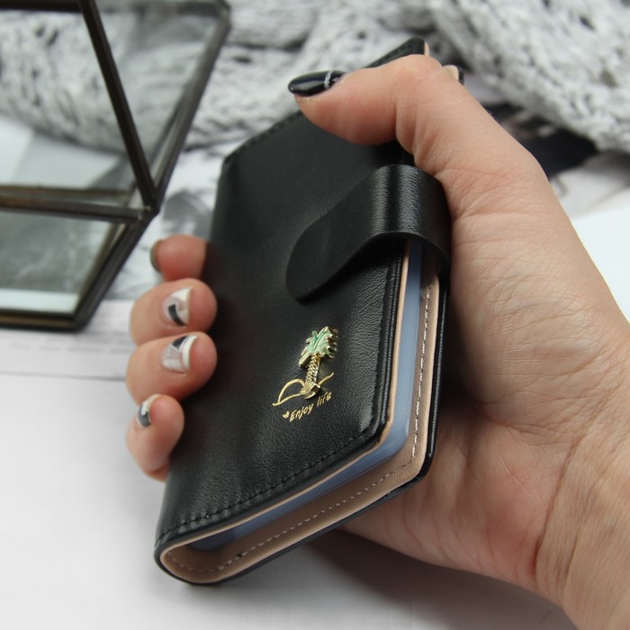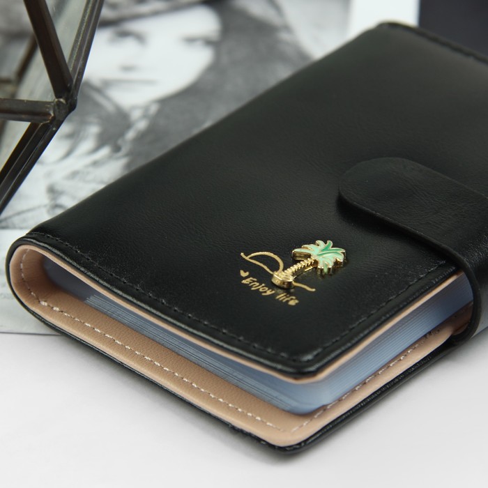 Визитница, 20 картхолдеров, на кнопке, цвет чёрный