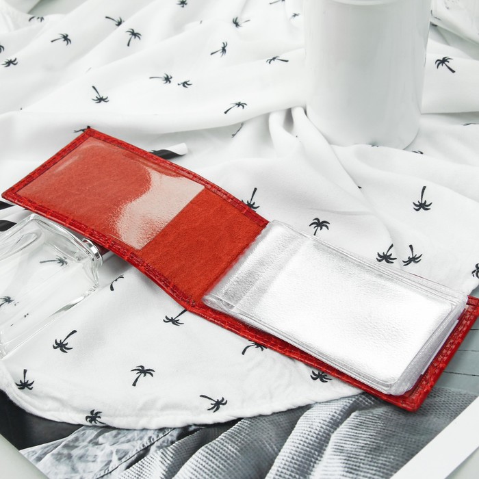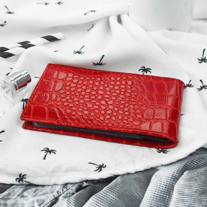 Визитница горизонтальная, 1 ряд, 18 карт, крокодил, цвет красный