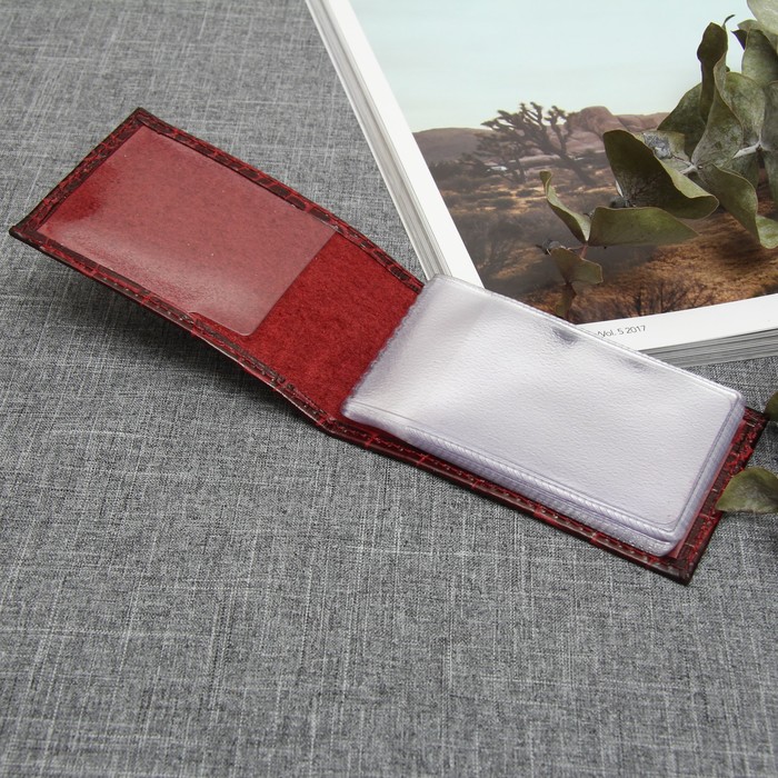 Визитница горизонтальная, 1 ряд, 18 карт, крокодил, цвет винный