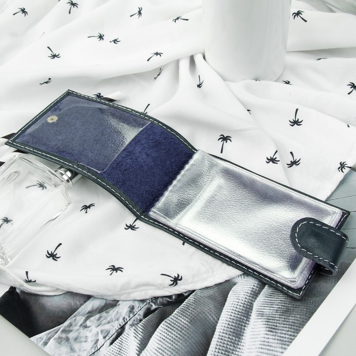 Визитница горизонтальная, 1 ряд, 18 карт, с хлястиком, орфей, цвет синий