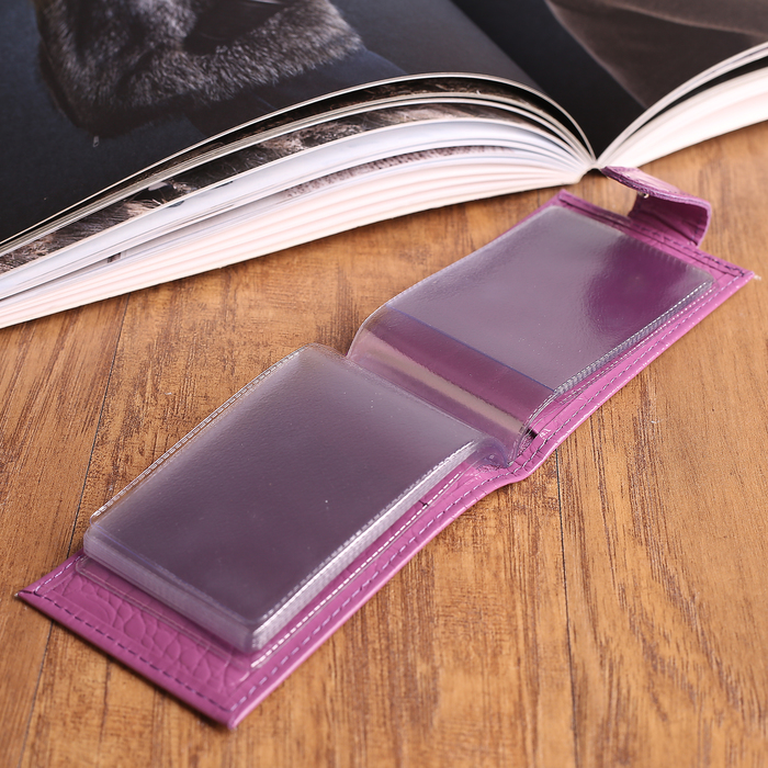Визитница горизонтальная, 1 ряд, 18 листов, кайман, цвет сиреневый