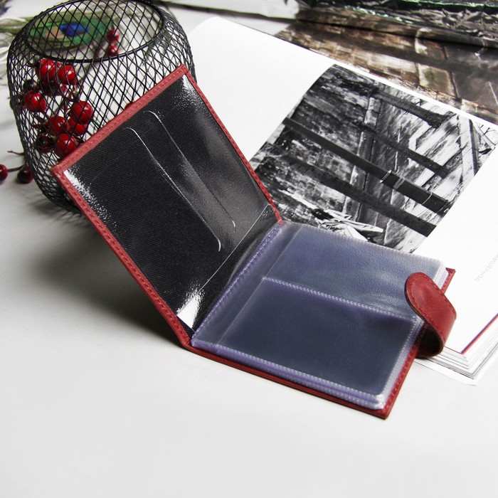 Визитница горизонтальная, 2 ряда, 18 листов, с хлястиком, пулап, цвет гранат
